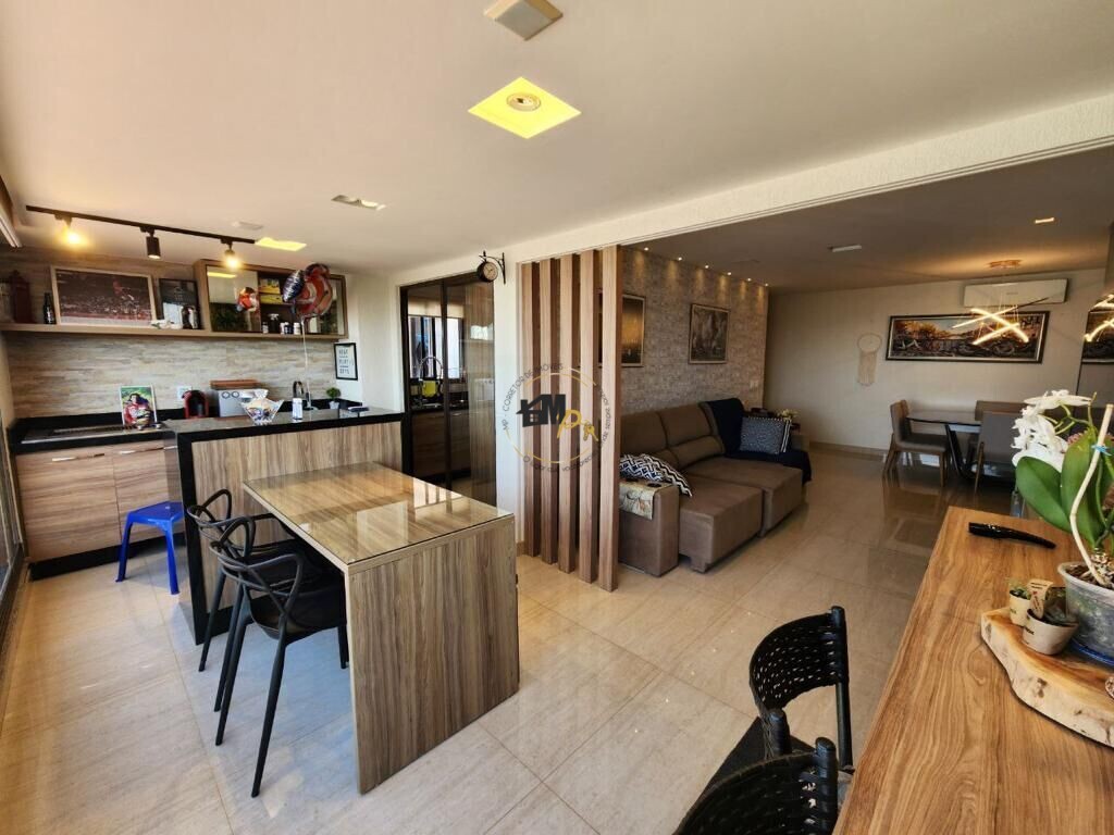 Varanda gourmet com acesso à cozinha e cortina de vidro